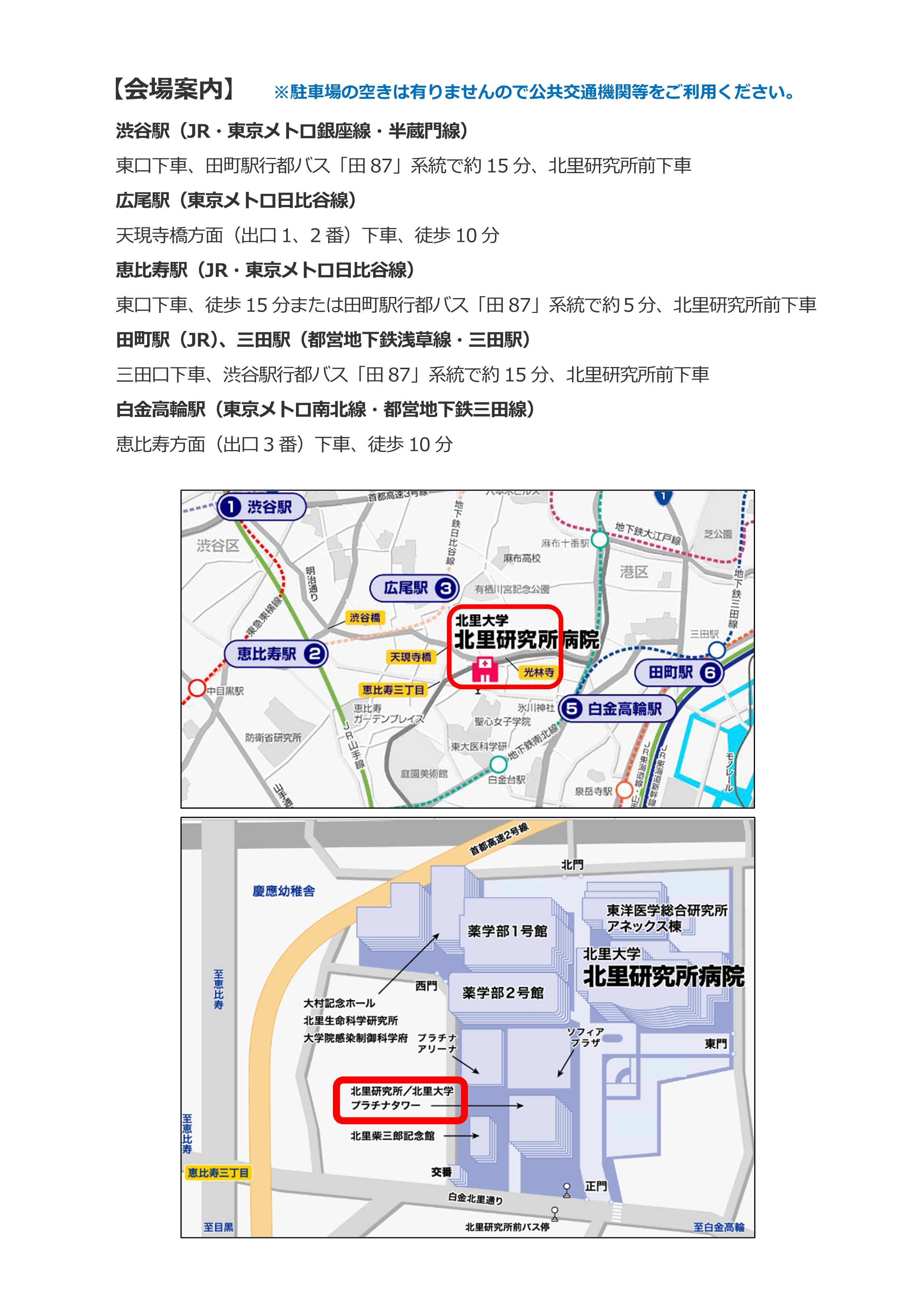 場所:北里研究所(白金)を予定